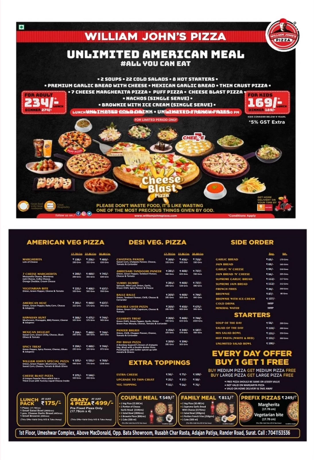 William Johns pizza is a well known pizza outlet which also gives offers on unlimited meals. And great place for your family get together or friends reunions.